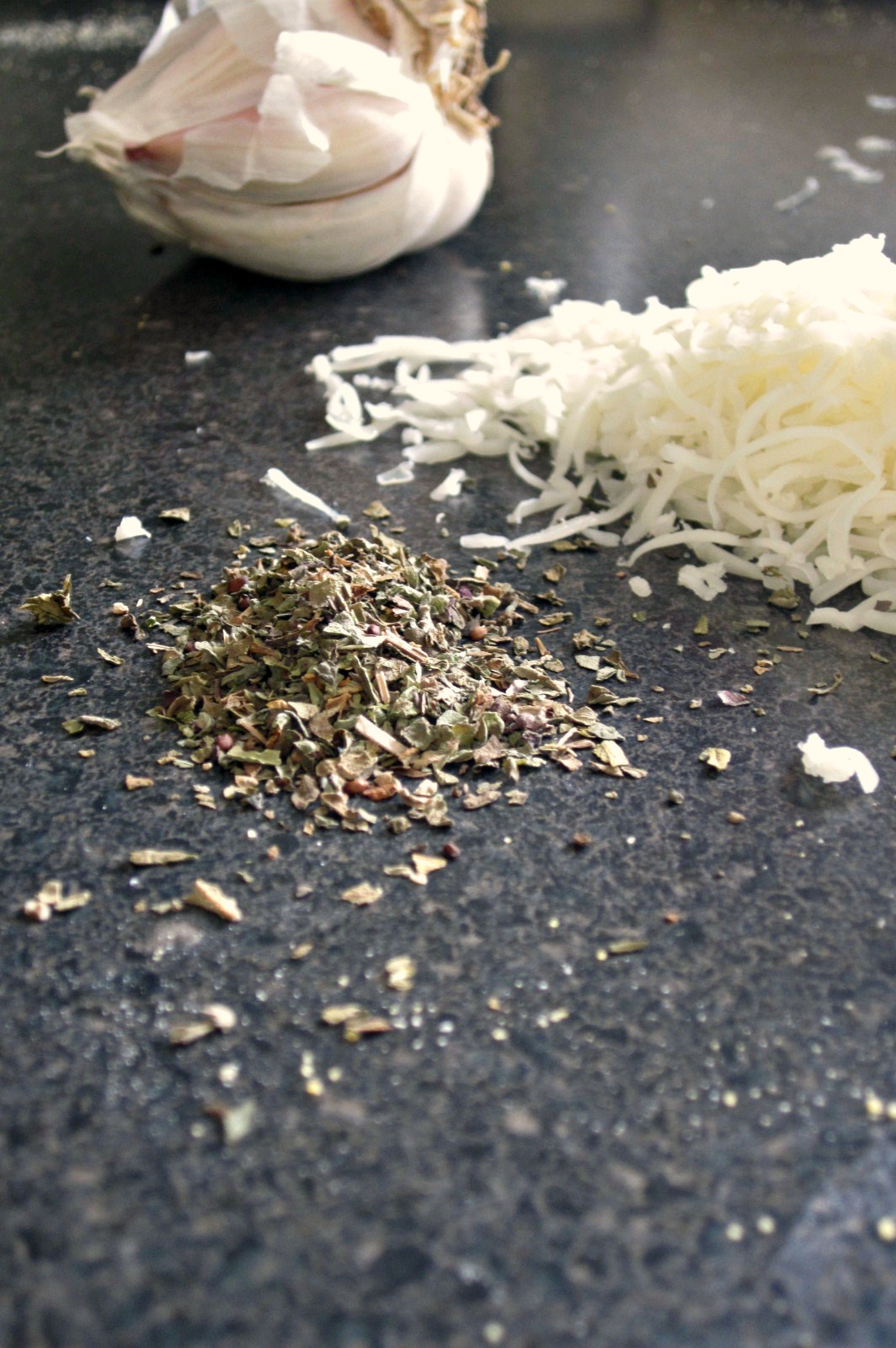 - Sprinkle cheeses on top along with basil and minced garlic.